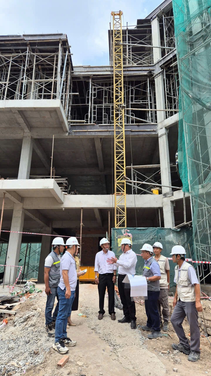 Đoàn công tác của Sở Giáo dục và Đào tạo TP.HCM kiểm tra tiến độ xây dựng Trường tiểu học Bình Chuẩn 3, phường Thuận Giao, TP.HCM - Ảnh: N.M