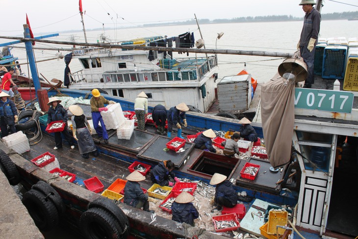 Tàu cá của ngư dân phường Sầm Sơn, tỉnh Thanh Hóa cập cảng Lạch Hới - Ảnh: HÀ ĐỒNG