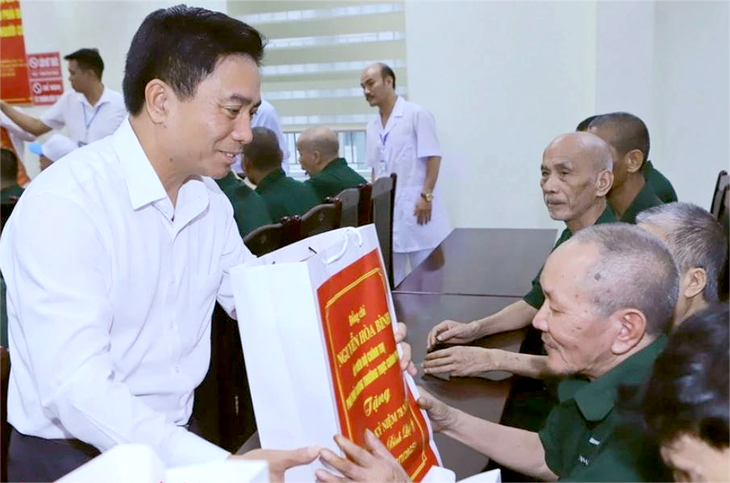 Ông Nguyễn Doãn Anh - Ủy viên Trung ương Đảng, Bí thư Tỉnh ủy Thanh Hóa - tặng quà các thương binh, bệnh binh đang điều trị tại Trung tâm Chăm sóc, nuôi dưỡng người có công Thanh Hóa - Ảnh: CTV