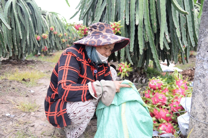 Trong ngày 9-2, thanh long ruột đỏ loại 3 được thu mua với giá 17.000 - 18.000 đồng/kg; loại 4 khoảng 12.000 đồng/kg; hàng dạt chỉ còn 5.000 - 6.000 đồng/kg, mức thấp nhất từ đầu vụ nghịch.
