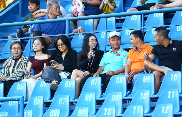 Gia đình Thanh Nhàn trên khán đài sân Bình Dương - Ảnh: QUANG THỊNH