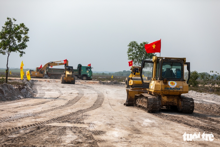 Trên công trường thi công sân bay Quảng Trị, tháng 4-2025 - Ảnh: HOÀNG TÁO