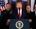 Trong bài phát biểu dài gần 10 phút ở Nhà Trắng ngày 8-1 sau vụ Iran nã tên lửa tấn công hai căn cứ quân sự có lính Mỹ đồn trú ở Iraq, Tổng thống Mỹ Donald