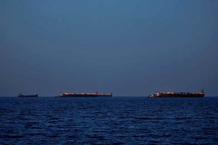 Các tàu chở dầu neo đậu ngày 10-3, khi vận tải qua eo biển Hormuz bị tắc nghẽn - Ảnh: REUTERS