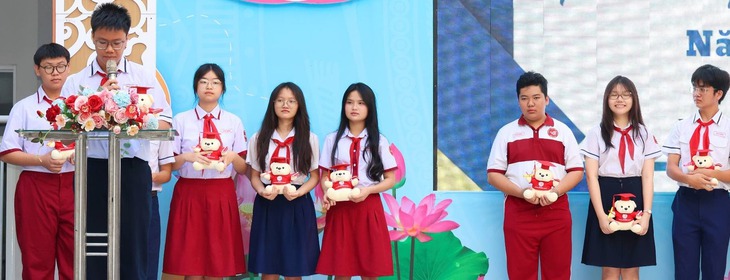 Học sinh Trường THCS Vân Đồn, phường Xóm Chiếu, TP.HCM trong lễ ra quân thi học sinh giỏi lớp 9 - Ảnh: NHƯ HÙNG