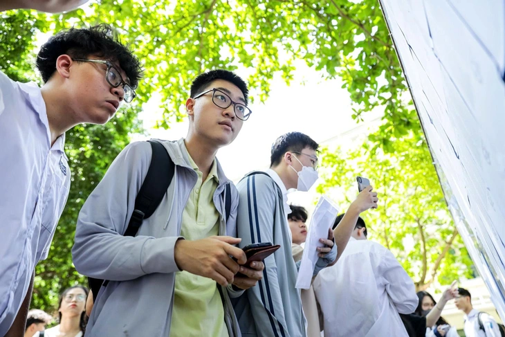 Học sinh kiểm tra thông tin thi tuyển sinh lớp 10 năm học 2025-2026 tại Hà Nội - Ảnh: DANH KHANG