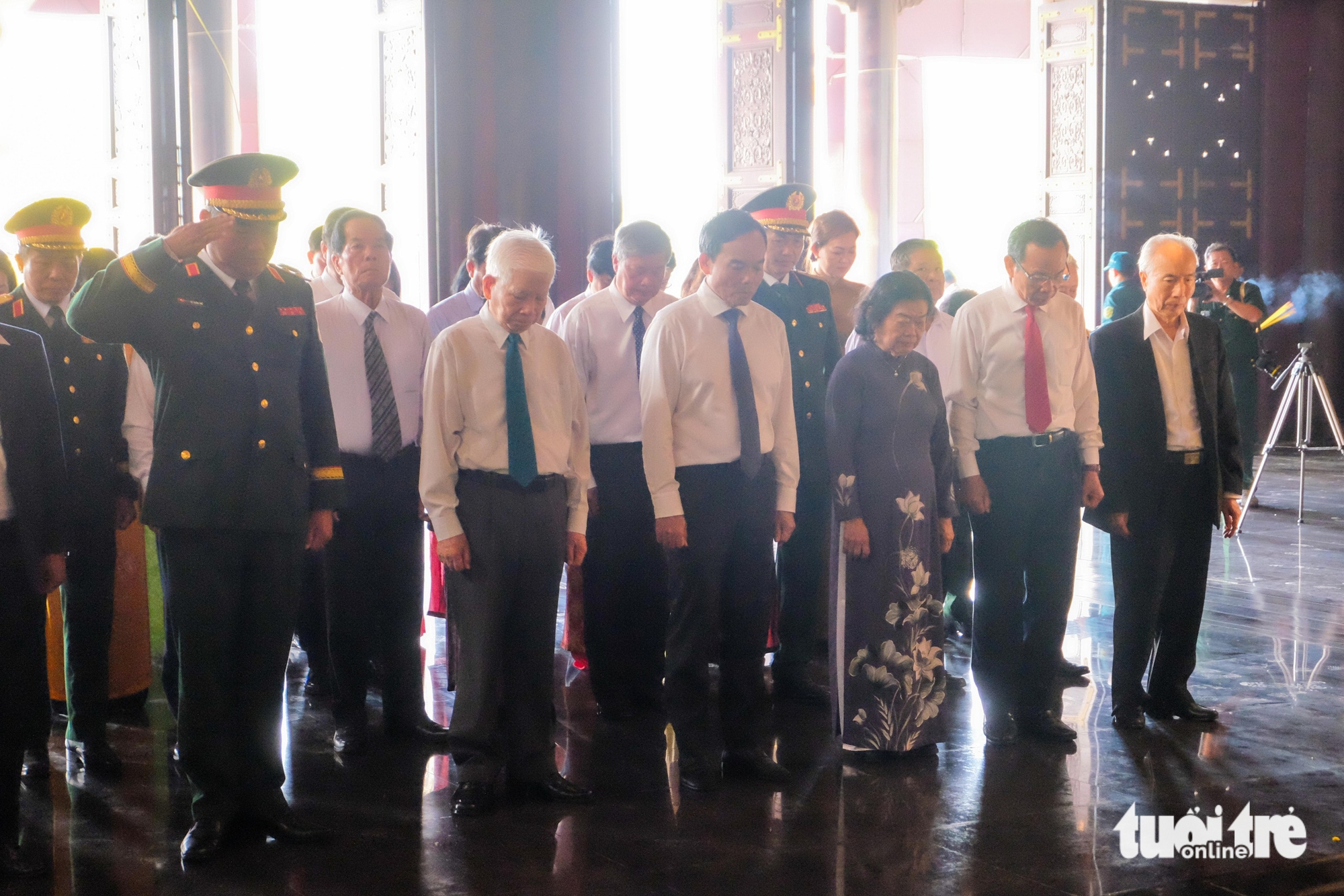 Đoàn lãnh đạo, nguyên lãnh đạo Đảng, Nhà nước và TP.HCM mặc niệm tưởng nhớ Chủ tịch Hồ Chí Minh cùng các anh hùng liệt sĩ, đồng bào, chiến sĩ đã hy sinh vì Tổ quốc - Ảnh: PHƯƠNG NHI
