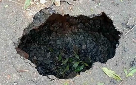 Trên quốc lộ 9B đoạn qua xã Lệ Ninh (tỉnh Quảng Trị), một “hố tử thần” sâu 3m xuất hiện ngay giữa đường.