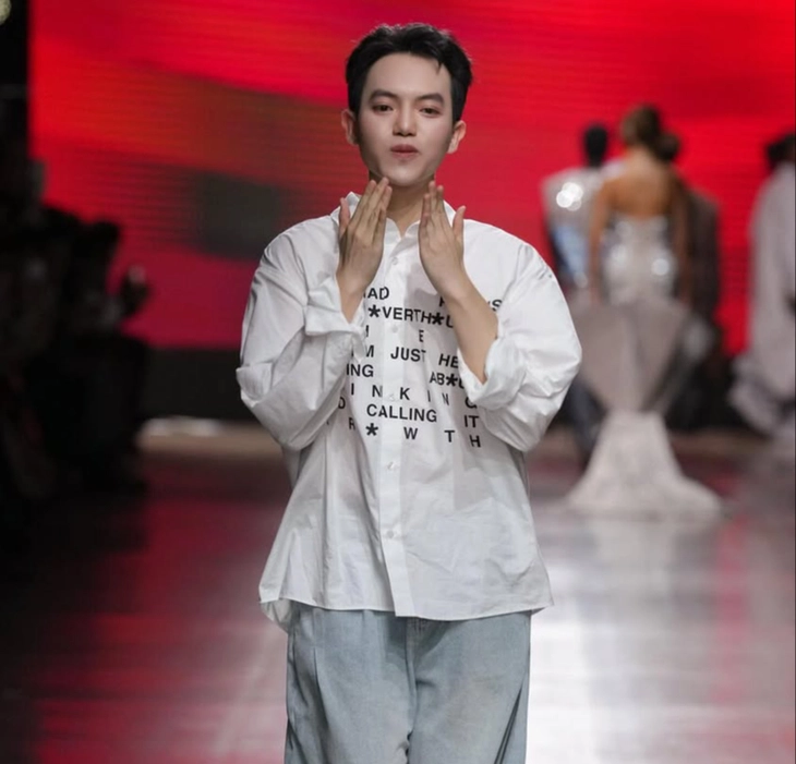 Nhà thiết kế Phan Đăng Hoàng trên sàn diễn Milan Fashion Week - Ảnh: NVCC