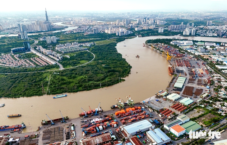 Khu vực làm cầu Thủ Thiêm 4 nối khu Sala (trong khu đô thị mới Thủ Thiêm) với quận 7 cũ - Ảnh: CHÂU TUẤN
