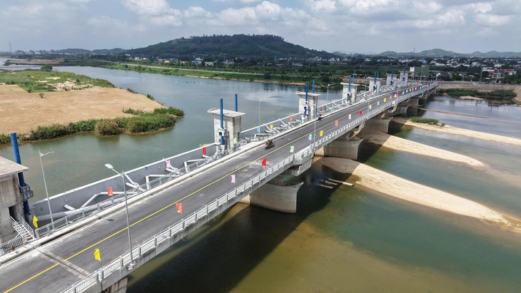 Cầu đập dâng hạ lưu sông Trà Khúc chính thức thông xe - Ảnh: TRẦN MAI
