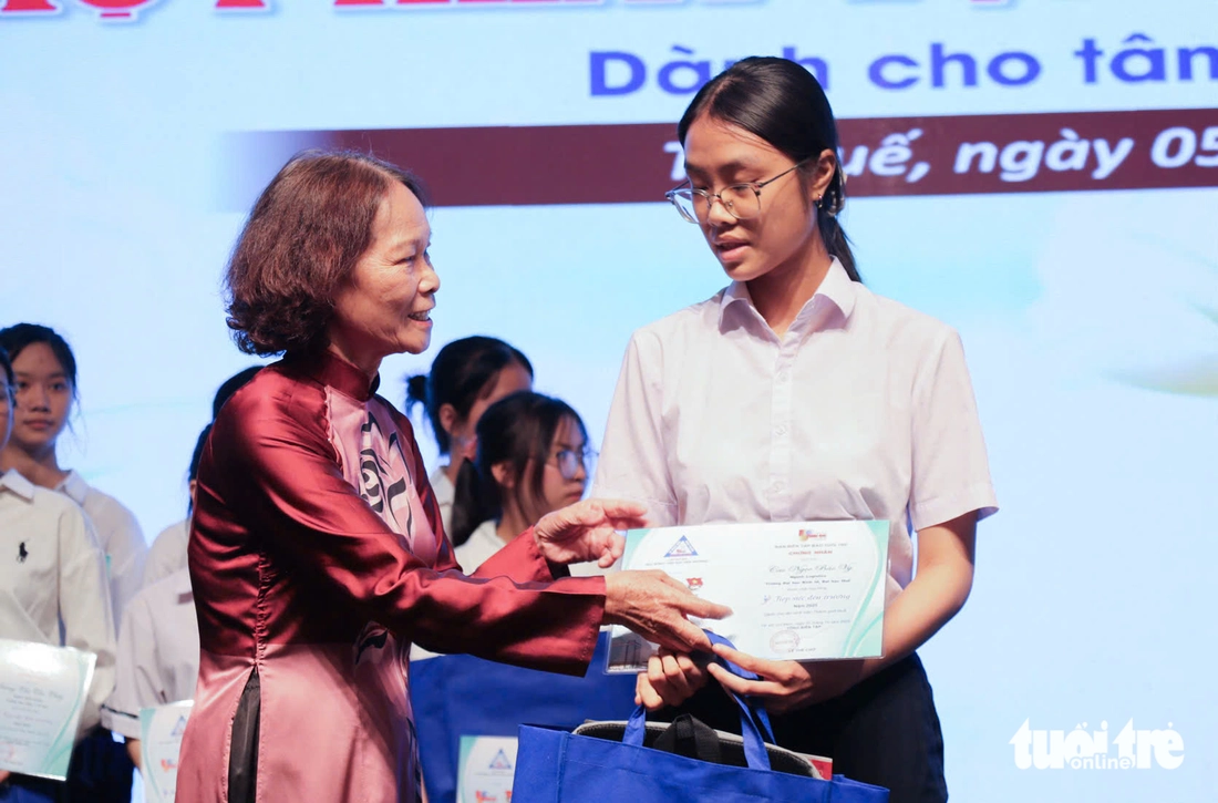 Trao 89 suất học bổng "Tiếp sức đến trường" cho tân sinh viên khó khăn TP Huế - Ảnh 2. 'Số tiền này con mua đôi giày mới đi học, không cần phải mượn giày của bạn nữa nhé con'