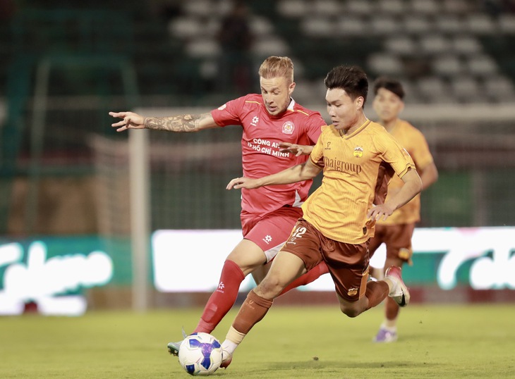 Hoàng Anh Gia Lai (phải) trong trận thua Công An TP.HCM - Ảnh: MINH ANH