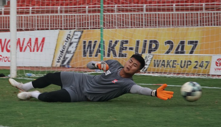 Thủ môn Văn Toản trong buổi tập chiều 4-5 trên sân Thống Nhất - Ảnh: S.H.