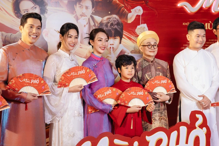 Thu Trang, NSND Xuân Hinh, đạo diễn Minh Beta và đoàn phim ra mắt Mùi phở tại TP.HCM - Ảnh: ĐPCC