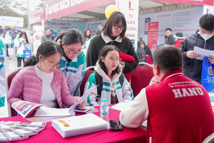 Học sinh tìm hiểu thông tin tuyển sinh Trường đại học Hà Nội - Ảnh: HANU