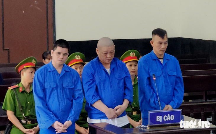 Bị cáo Thành (giữa) cùng bị cáo Tuấn và Thiệu tại phiên tòa xét xử - Ảnh: HOÀI THƯƠNG