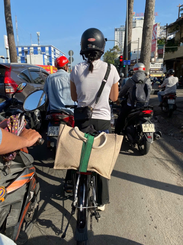 Đi làm bằng xe đạp vừa rèn luyện sức khỏe, vừa tiết kiệm xăng - Ảnh: HỒNG ĐIỆP