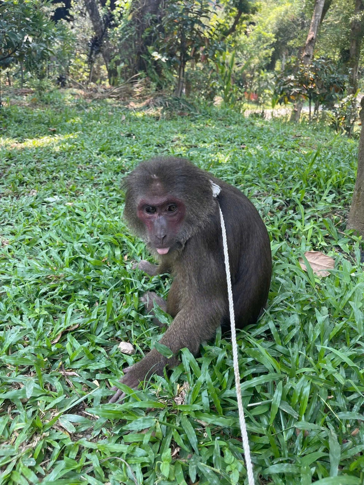 Sau khi tiếp nhận thông tin, cán bộ kiểm lâm khu vực đã có mặt tại chùa, phối hợp với địa phương cùng các sư thầy tiếp cận, bắt chú khỉ mặt đỏ lại để bảo vệ.