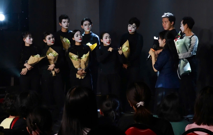 Các diễn viên chia sẻ cảm xúc sau khi hoàn thành vở diễn - Ảnh: BÉ HIẾU