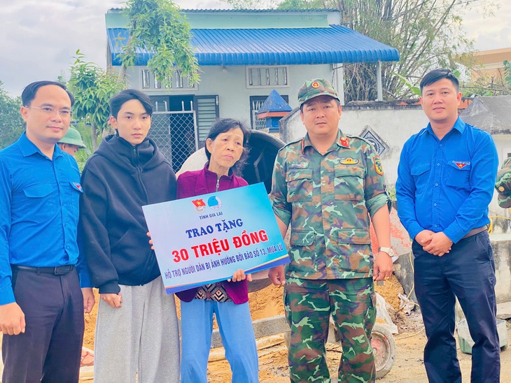Tỉnh Đoàn Gia Lai trao phần kinh phí 30 triệu đồng hỗ trợ cho hộ bà Lê Thị Cúc, trú xã Tuy Phước Bắc - Ảnh: Đ.T.