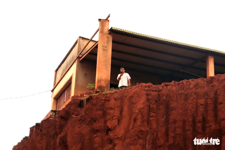 Như Tuổi Trẻ Online đã thông tin, đơn vị thi công đã hạ cốt nền với độ cao từ 5 - 10m, khiến nhiều nhà dân nằm cheo leo trên đồi.