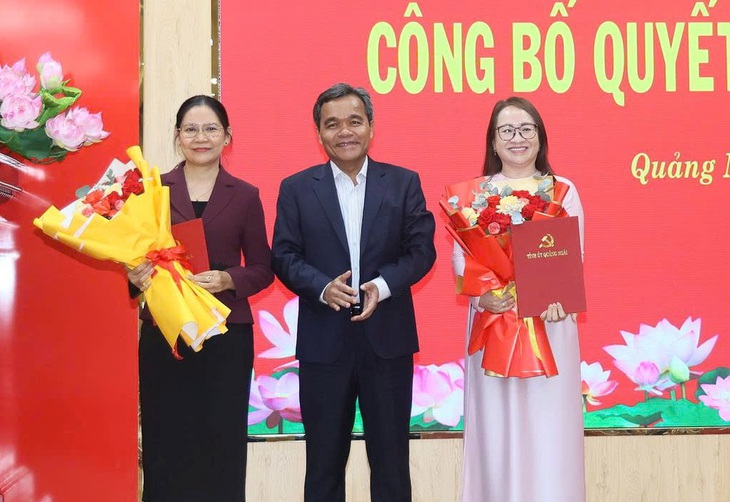 Bà Hà Thị Anh Thư (phải) và bà Huỳnh Thị Tuyết Sương được Tỉnh ủy Quảng Ngãi điều động, phân công công tác mới - Ảnh: TRẦN MAI