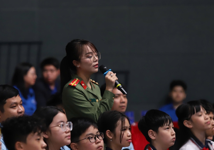 Cô cũng đặt câu hỏi về các giải pháp để thanh thiếu nhi tự bảo vệ mình trên không gian mạng, nâng cao vai trò của người trẻ trong phòng chống tội phạm sử dụng công nghệ cao và làm trong sạch môi trường mạng.