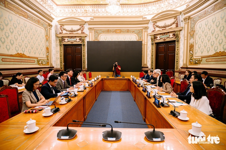 Toàn cảnh buổi tiếp và làm việc giữa Phó chủ tịch UBND TP.HCM Nguyễn Công Vinh với đoàn công tác Tổ chức Tài chính quốc tế (IFC) chiều 14-4 - Ảnh: THANH HIỆP