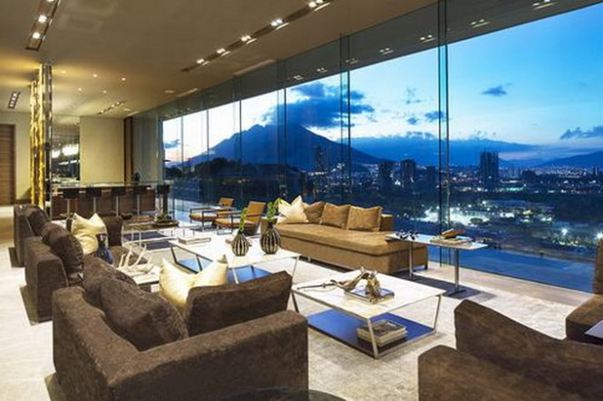 | Các tầng trên cùng của tòa nhà gồm các khu vực như một thư viện, tiền sảnh, phòng ăn, phòng khách và một sân thượng rộng rãi |
