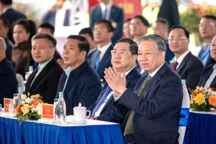 Tổng Bí thư Tô Lâm dự lễ khởi công dự án khu đô thị đa mục tiêu Bắc Thăng Long Urban City sáng nay tại Hà Nội - Ảnh: K.TR.