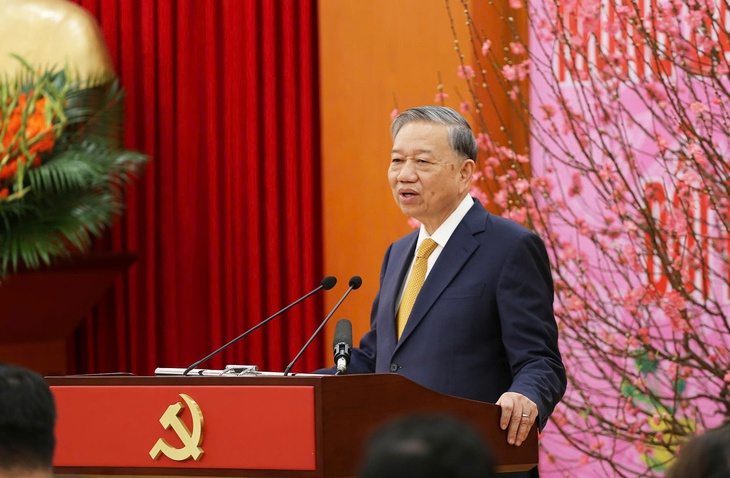 Tổng Bí thư Tô Lâm phát biểu trong buổi gặp mặt đoàn kiều bào tiêu biểu về tham dự chương trình Xuân quê hương 2026 ngày 8-2 - Ảnh: Ủy ban Nhà nước về người Việt Nam ở nước ngoài