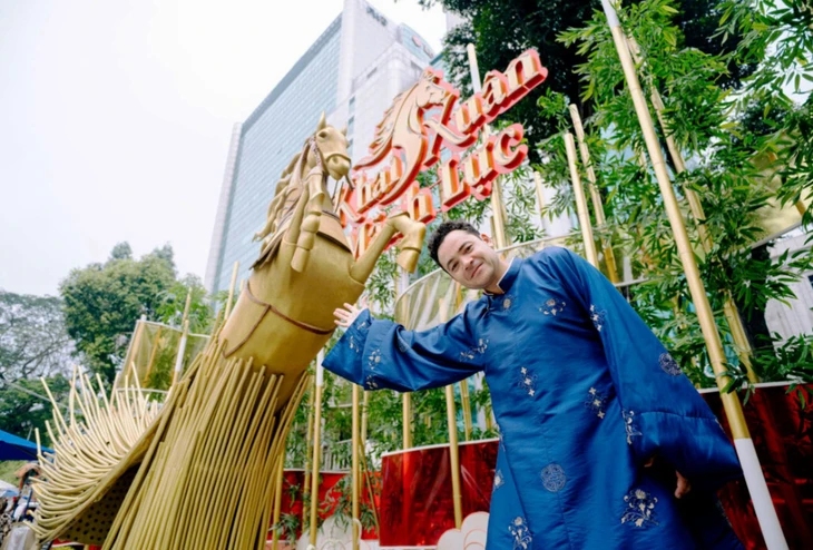 Tổng lãnh sự Pháp tại TP.HCM Etienne Ranaivoson trong trang phục áo dài truyền thống Việt Nam du xuân tại Lễ hội Tết Việt ở Nhà văn hóaThanh niên - Ảnh: THANH HIỆP
