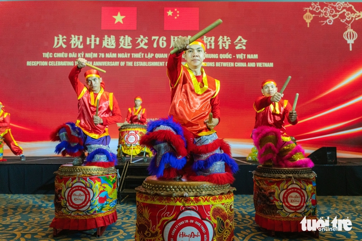 Tiết mục nghệ thuật mở đầu tiệc chiêu đãi kỷ niệm 76 năm quan hệ Việt Nam - Trung Quốc - Ảnh: NGỌC ĐỨC