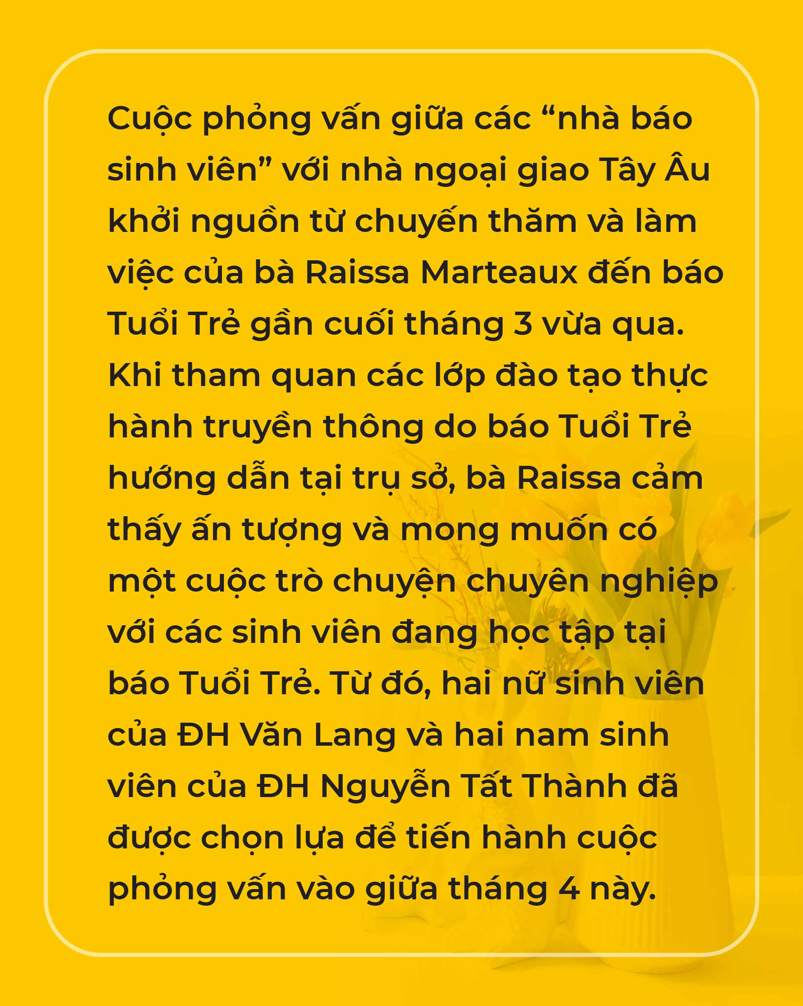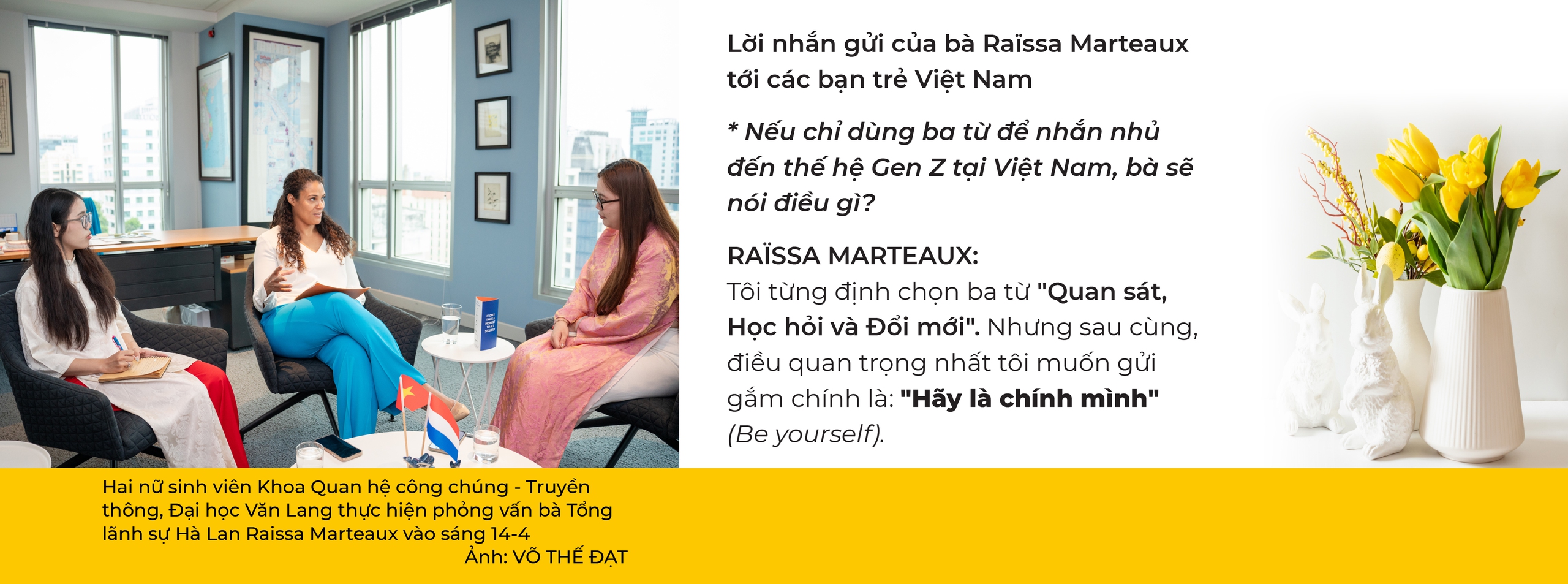 Một buổi sáng giữa tháng 4, trong không gian trang nhã của Văn phòng Tổng lãnh sự Vương quốc Hà Lan tại TP.HCM, cuộc trò chuyện giữa một nhà ngoại giao trẻ và những "nhà báo sinh viên" diễn ra cởi mở hơn mong đợi.