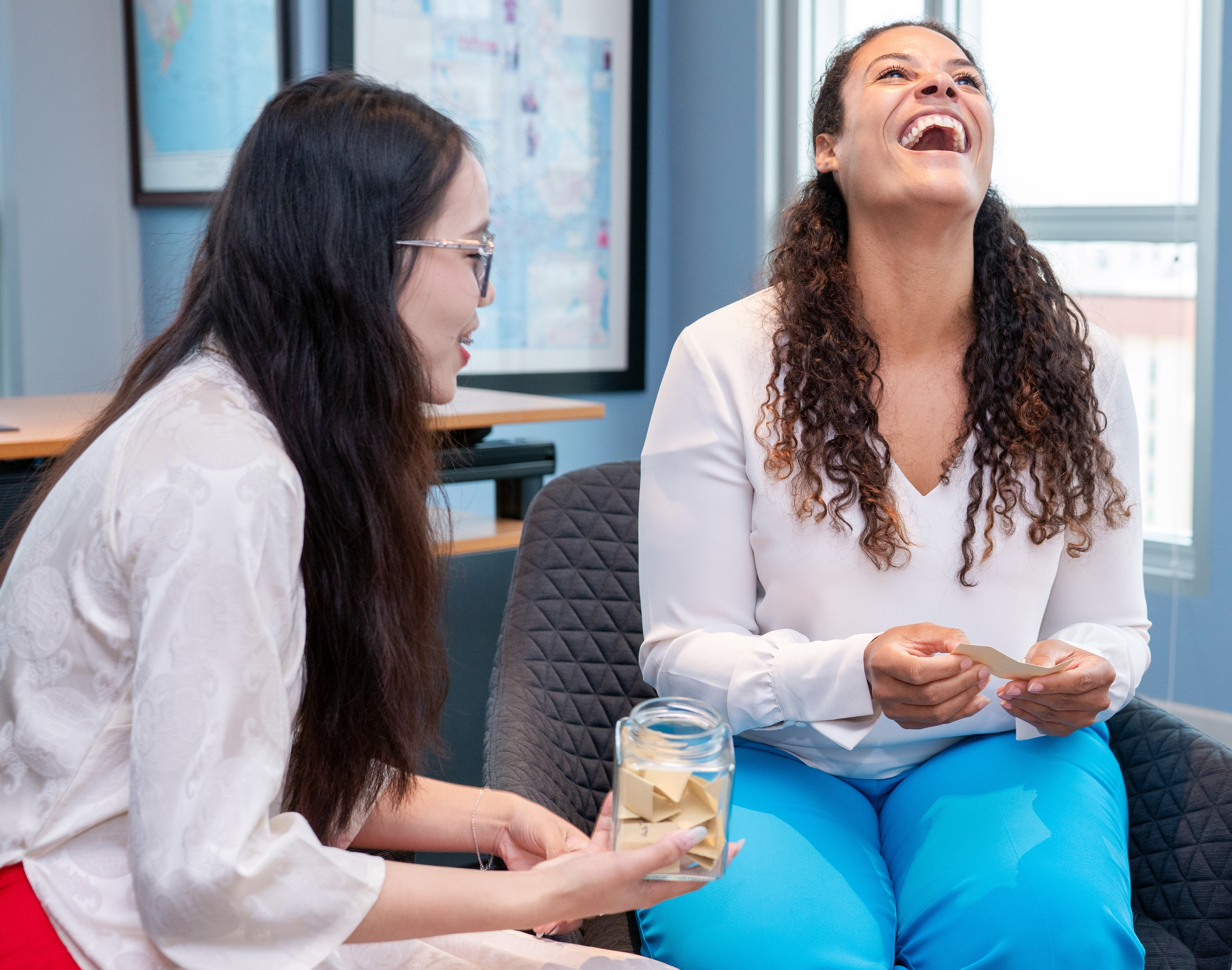 Bà Raissa Marteaux cảm thấy thú vị khi lần đầu trả lời câu hỏi theo cách bốc trong “túi mù” - Ảnh: VÕ THẾ ĐẠT