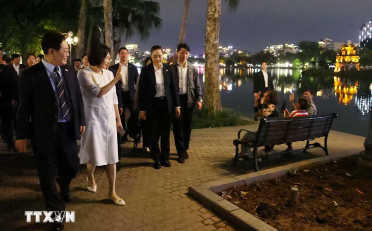 Tổng thống Hàn Quốc Lee Jae Myung và Phu nhân Kim Hae Kyung có những giây phút thư giãn bên hồ Hoàn Kiếm