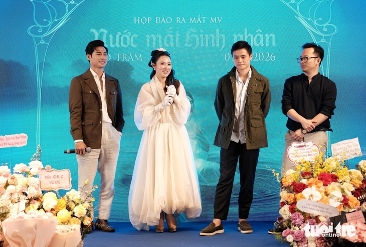 Bảo Trâm (thứ hai từ trái qua) và ê kíp chia sẻ về MV - Ảnh: HÀ PHƯƠNG