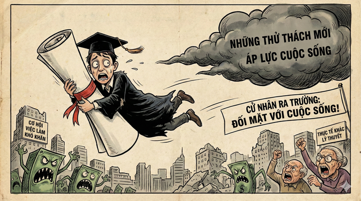 Sinh viên và nỗi sợ tốt nghiệp - Ảnh: AI