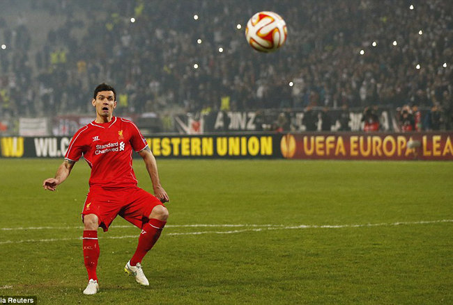 | Cú sút lên trời của Dejan Lovren khiến Liverpool bị loại khỏi Europa League - Ảnh: Reuters |