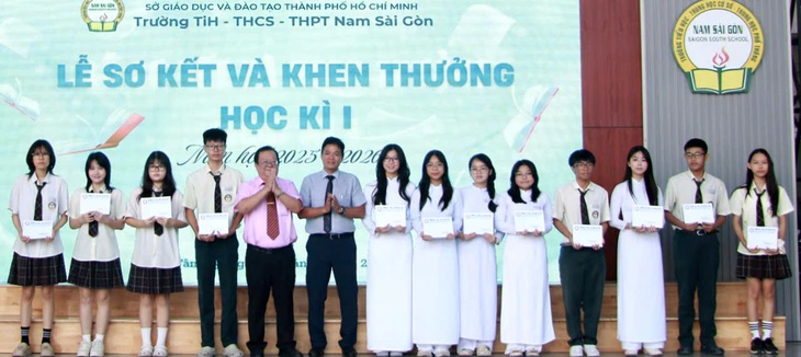 Trường tiểu học - THCS - THPT Nam Sài Gòn tuyên dương học sinh giỏi tại lễ sơ kết học kỳ 1 năm học 2025-2026 - Ảnh: Web nhà trường