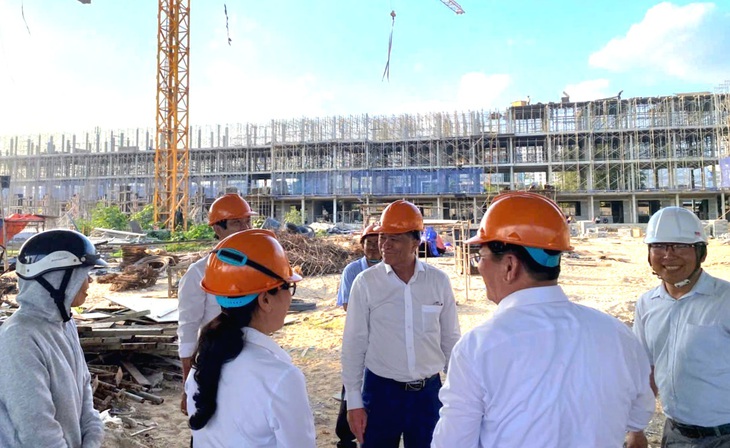 Lãnh đạo Sở Giáo dục và Đào tạo TP.HCM kiểm tra tiến độ xây dựng tại Trường THPT khu vực phường Đông Hưng Thuận, quận 12, TP.HCM cũ - Ảnh: T.H.