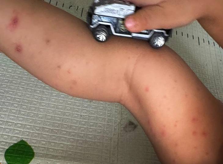 Trẻ mắc tay chân miệng thường xuất hiện các nốt hồng ban kèm bọng nước trên da - Ảnh: X.M.