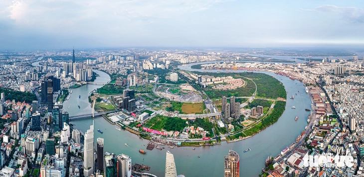 Trong ảnh là hai bờ sông Sài Gòn, một bên là trung tâm TP.HCM, đối diện là khu đô thị mới Thủ Thiêm - nơi triển khai các dự án metro số 2 đoạn Bến Thành - Thủ Thiêm, quảng trường trung tâm và Trung tâm hành chính TP.HCM, cùng dự án cải tạo Bảo tàng Hồ Chí Minh - chi nhánh TP.HCM - Ảnh: CHÂU TUẤN