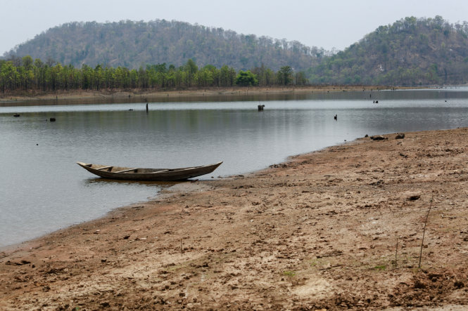 Dưới cái nắng như thiêu đốt của mùa khô, lòng hồ Đắk Mil (xã Krông Na, huyện Buôn Đôn, Đắk Lắk) mấy ngày nay gần như cạn kiệt. Trên lòng hồ trồi lên những doi đất nhiều hình thù, kết hợp với màu xanh của thảm cỏ, màu vàng của những nhánh cây khô, đã tạo nên thứ “màu quan san” có một không hai.