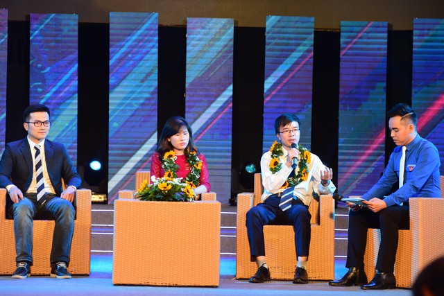 Các gương điển hình giao lưu tại lễ trao giải quả cầu Vàng năm 2018 - Ảnh: DUYÊN PHAN