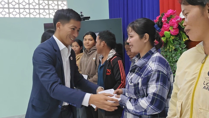Người dân xã Hòa Thịnh nhận những phần quà hỗ trợ sinh kế, tái thiết cuộc sống sau lũ - Ảnh: MINH CHIẾN