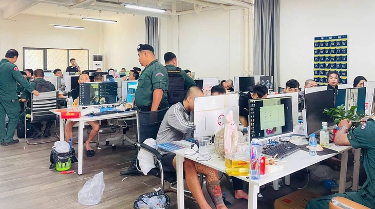 Lực lượng chức năng hai nước phối hợp đột kích bắt giữ toàn bộ băng nhóm lừa đảo qua mạng ở Campuchia - Ảnh: THANH TUẤN