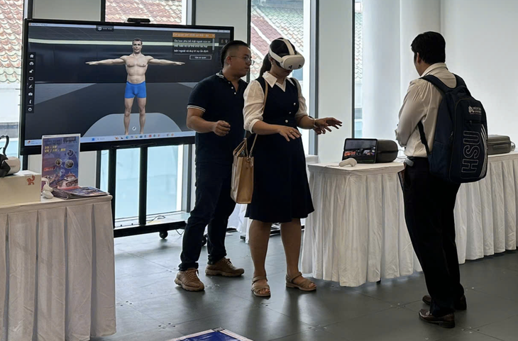Trải nghiệm công nghệ thực tế ảo tại triển lãm - Ảnh: HỒNG NGUYỄN