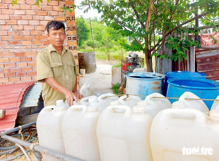 Do đó mùa khô hạn năm 2026 anh phải đẩy xe đi mua nước ao về lắng lọc lại phục vụ cho sinh hoạt ăn uống, tắm rửa hằng ngày.